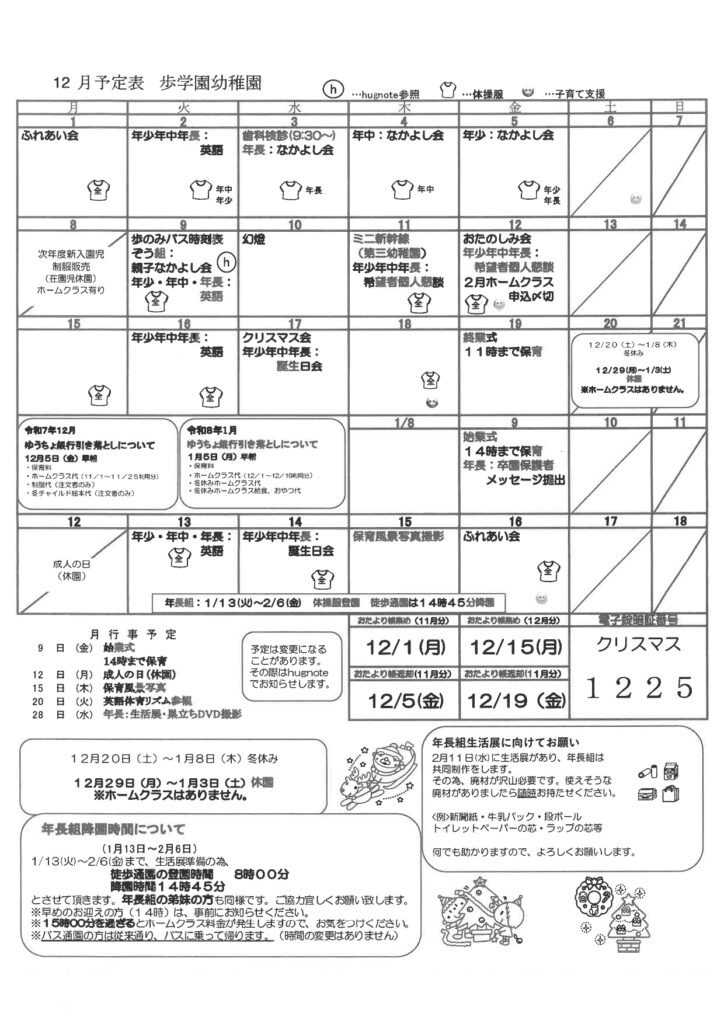 【幼稚園】12月行事予定