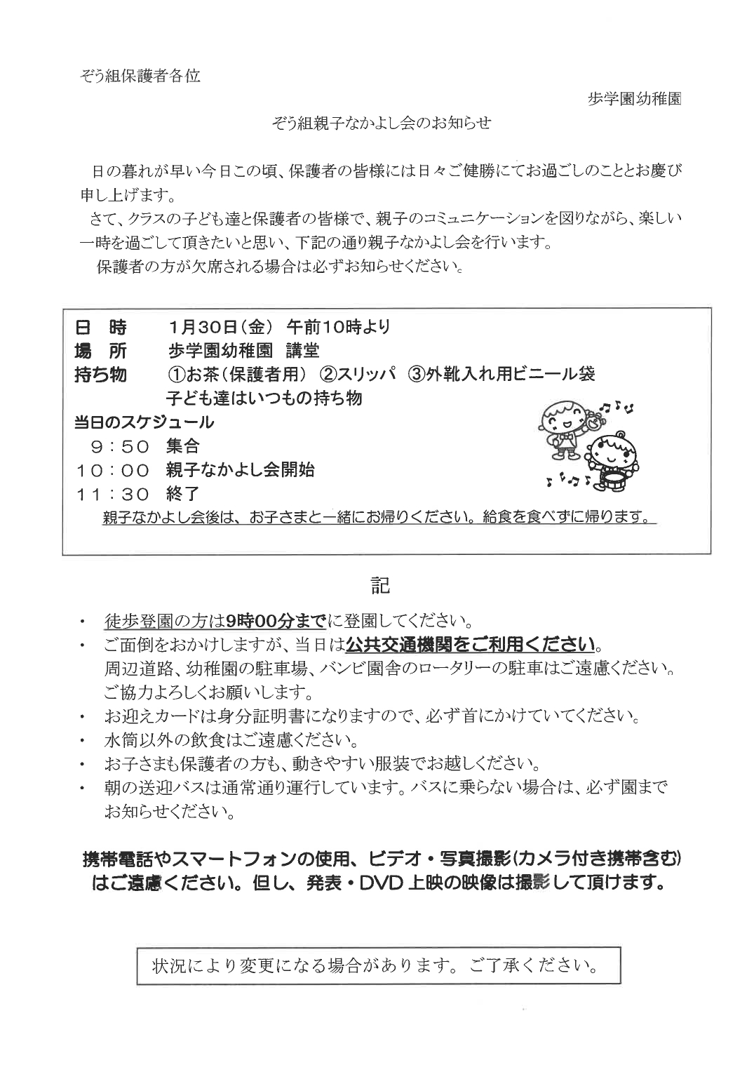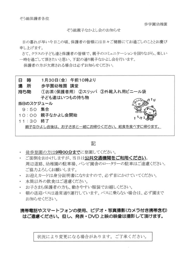 歩学園幼稚園のお知らせ