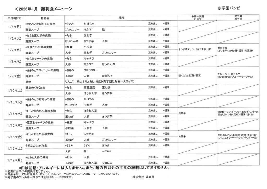 【りす】1月離乳食献立