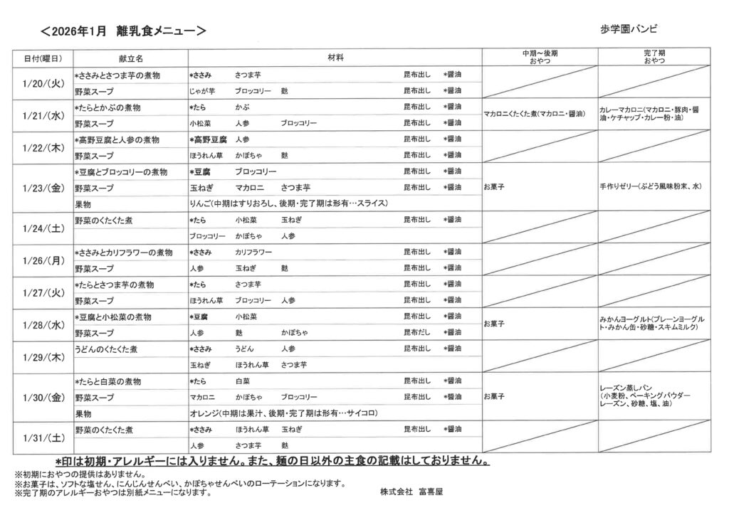 【ばんび】1月給食献立
