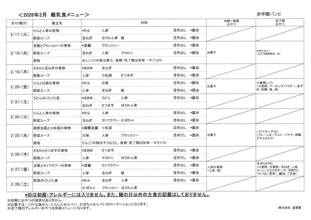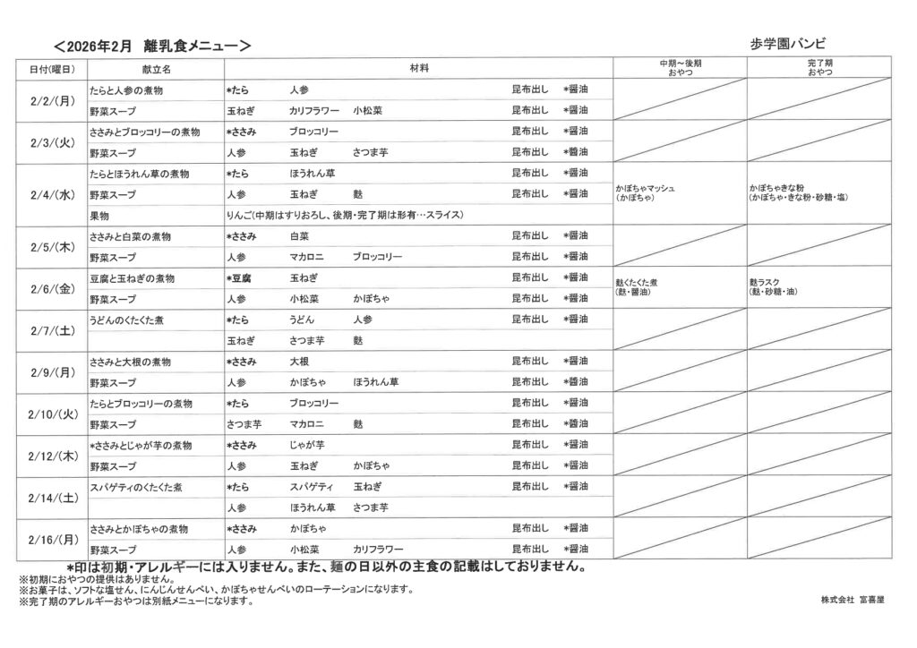【りす】2月離乳食献立