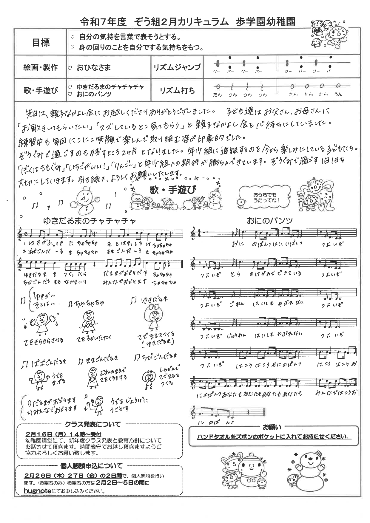 【年少】2月カリキュラム