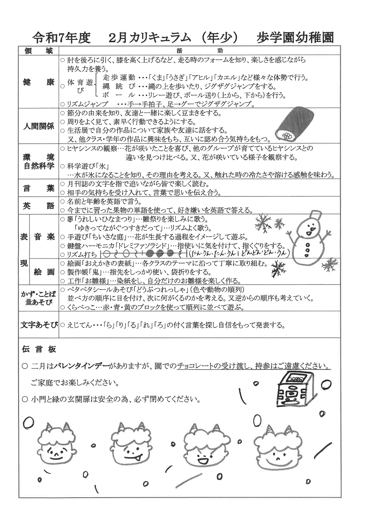 【年少】2月カリキュラム
