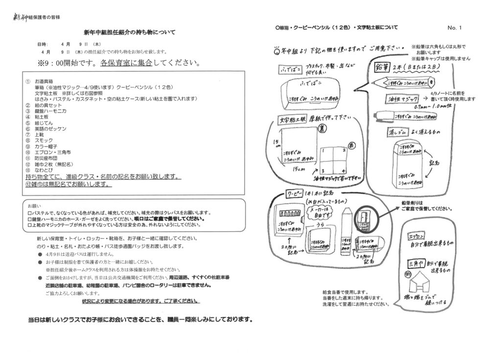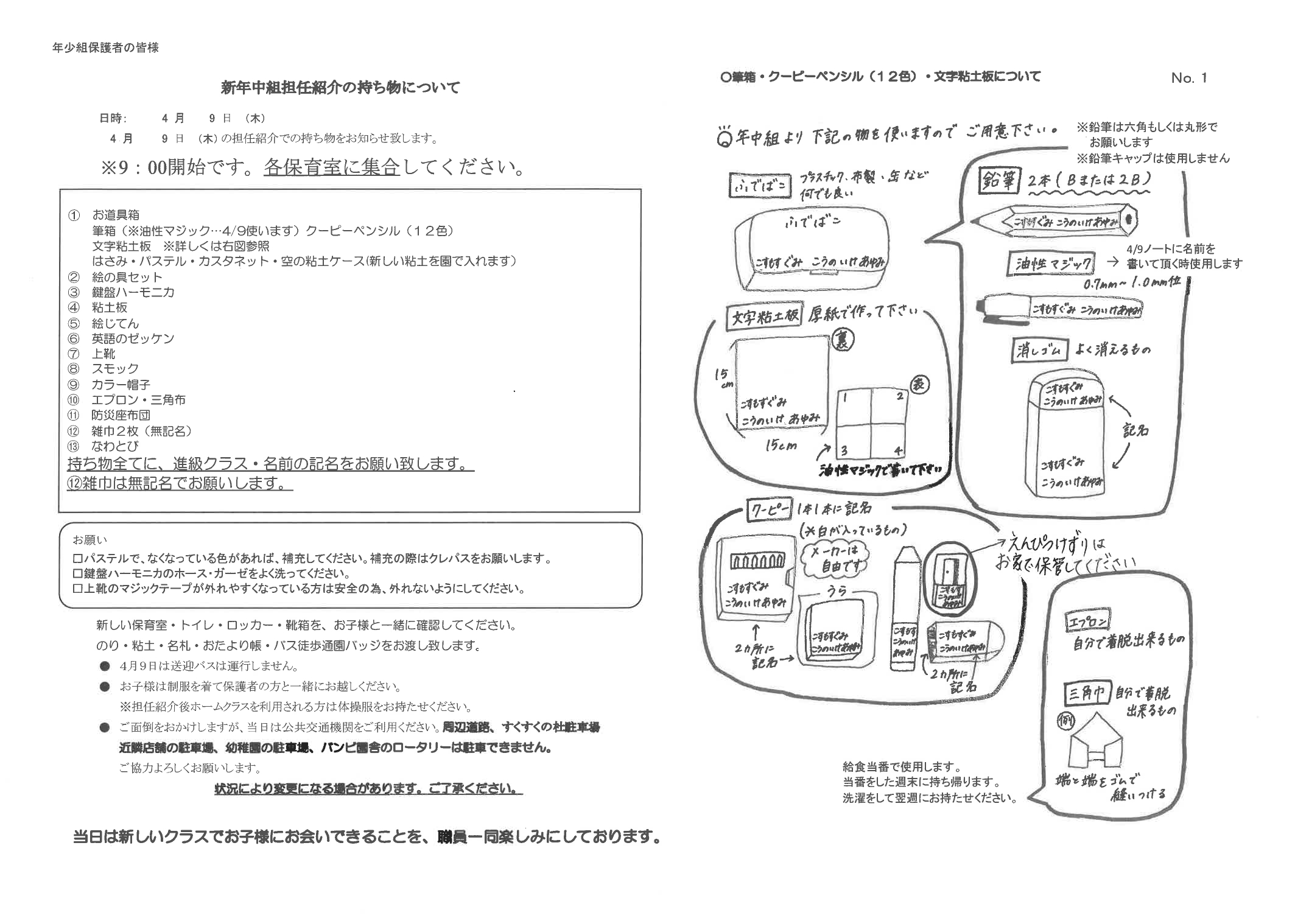 朝9:00開始ですので、それまでに各保育室に集合してください。