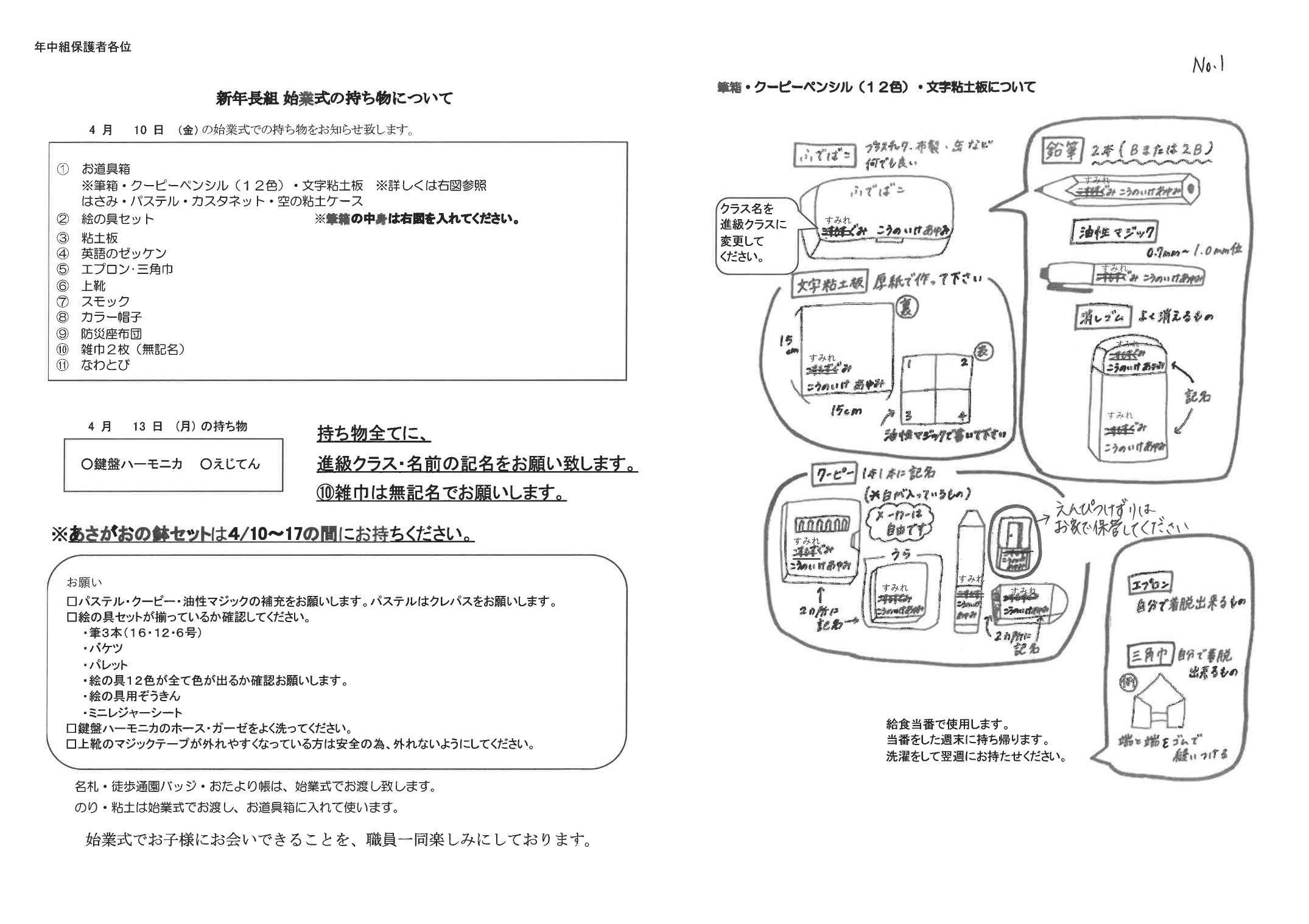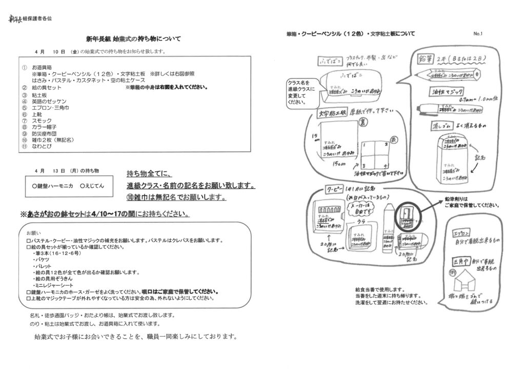 【新年長】始業式の持ち物について