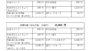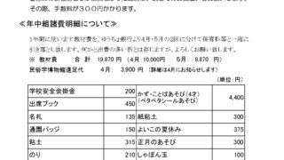 新入園児 諸費明細令和7年度から在園している園児 諸費明細